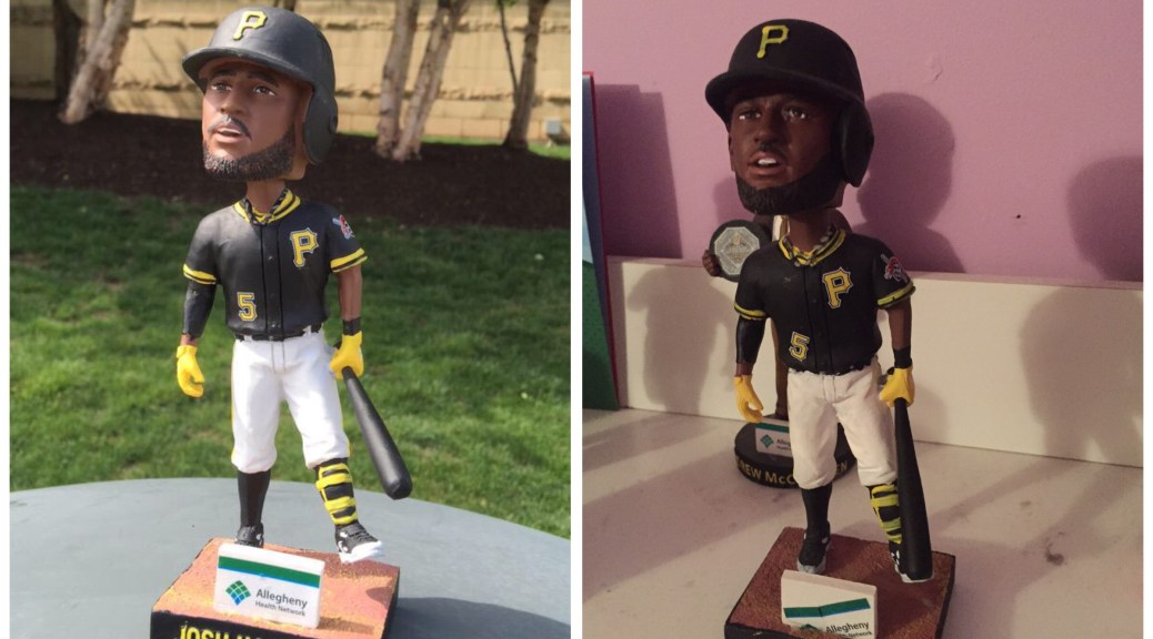 Top to bottom today was a terrific bobble head giveaway starting with the Pirates choice of last years breakout player Josh Harrison and continuing through to whooping the pitcher MLB experts were anointing baseball’s best.