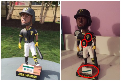 Exhibit A: A side by side comparison of the bobblehead advertised (left) vs the bobblehead taken home (right).